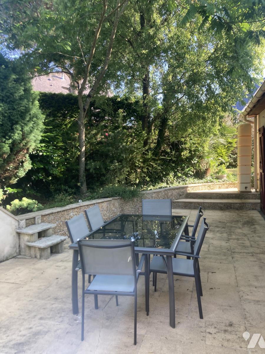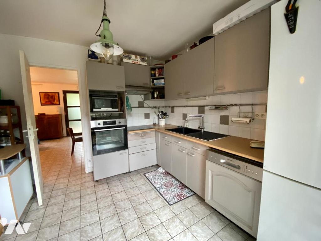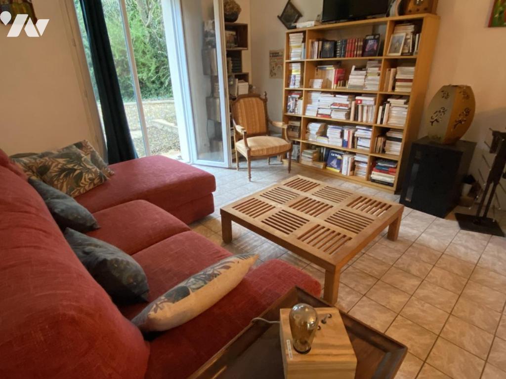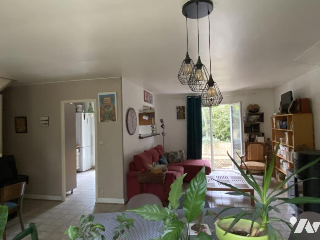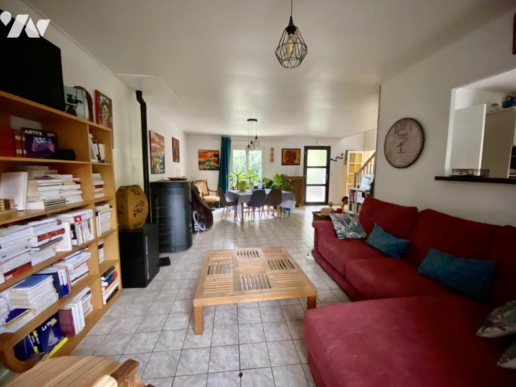 Vaste pièce de vie traversante (avec poêle à granulés) porte fenêtre donnant s/terrasse sans vis à vis, cuisine séparée donnant sur terrasse, chambre, bureau avec salle d'eau attenante récente,