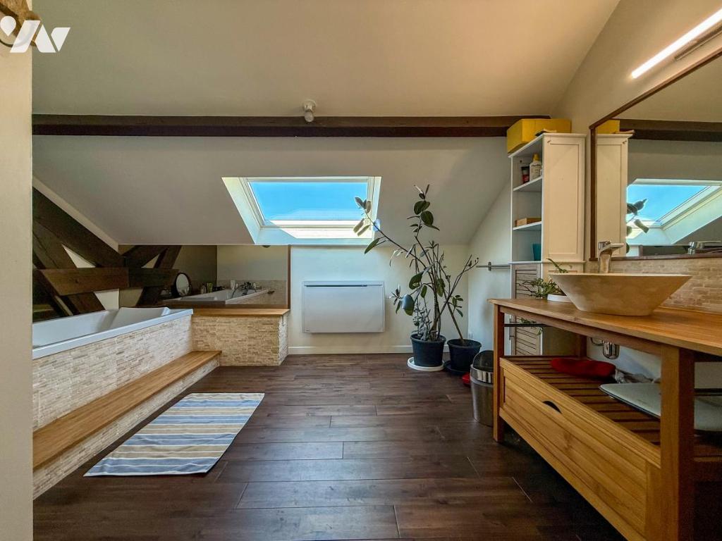 - A l'entresol: Appartement T3 avec accès indépendant (et accès par l'intérieur de la maison) comprenant une pièce de vie avec cuisine ouverte, 2 chambres, une salle de bains et des WC.