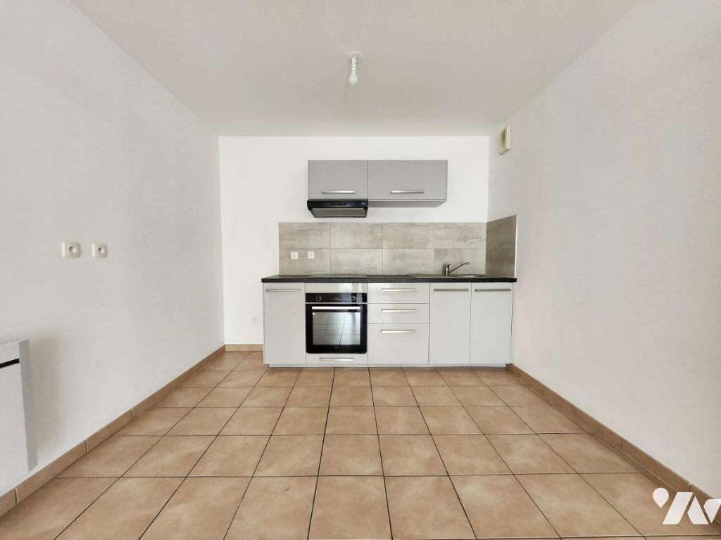 Une entrée avec placard, une pièce de vie donnant sur une large terrasse exposée sud et avec cuisine ouverte aménagée et équipée, une chambre avec placard, une salle d'eau, et WC séparés.