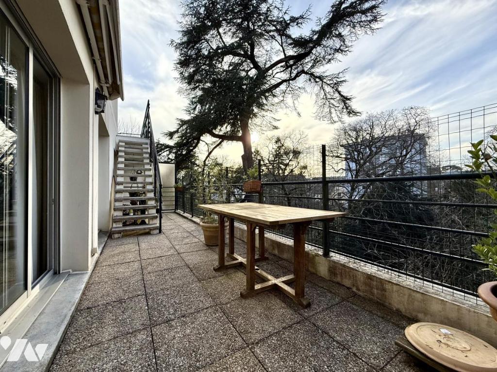 L'ascenseur sécurisé vous mènera directement dans l'entrée avec placard desservant salon-séjour traversant de 50 m² avec plafond cathédrale prolongé par une terrasse d'environ 23 m² exposée Ouest et son balcon exposé Est, une cuisine indépendante attenante, une buanderie, une chambre avec sa salle d'eau spacieuse et sa terrasse exposée Est de 12 m², des WC indépendants.
